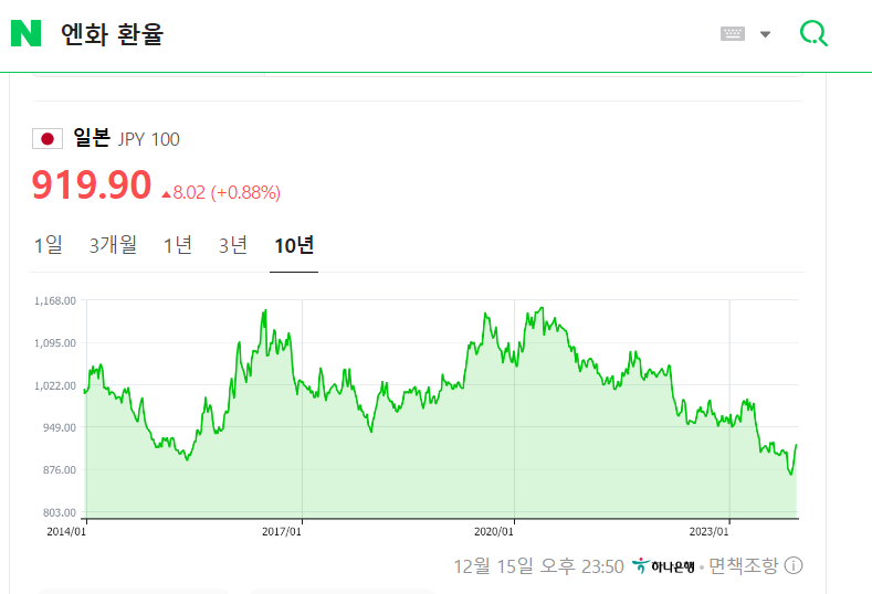 그래서 주변에 엔화사서 일본 여행가는 분들이 많으시더라고요.