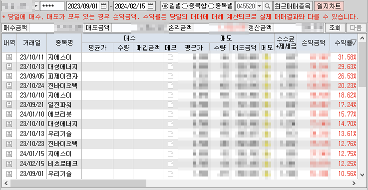 6. 그동안의 수익 실현 내역 및 노하우 글은?