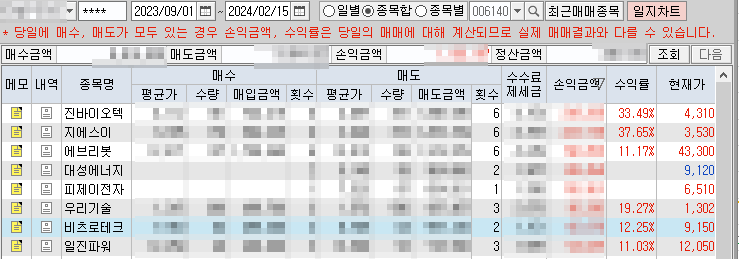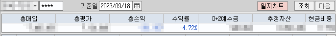 23년 9월부터 24년 2월까지 각 달 중순의 수익률을 평균한 값이며, 아래 그림은 평균에 근접한 작년 9월의 평가손익입니다.