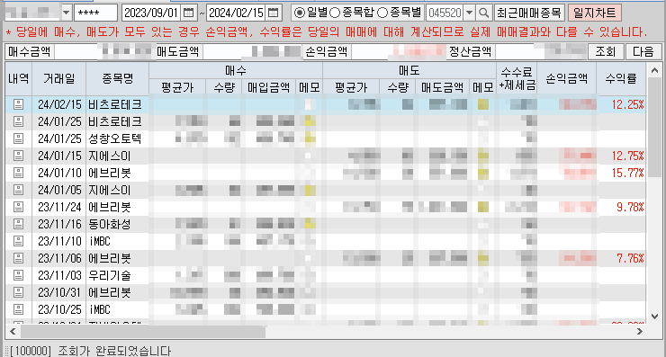 위와 같이 약 반년동안 단 한 번의 손절 매도가 없었습니다.