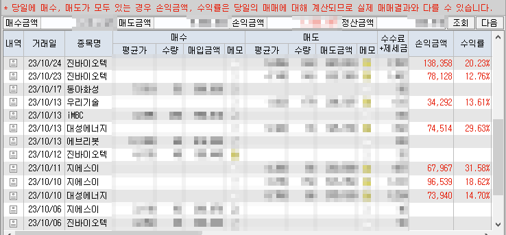 매매일지, 매매내역을 보고 스스로를 다그치는 반성(아래 그림 클릭하면 해당 반성문 나옵니다.)