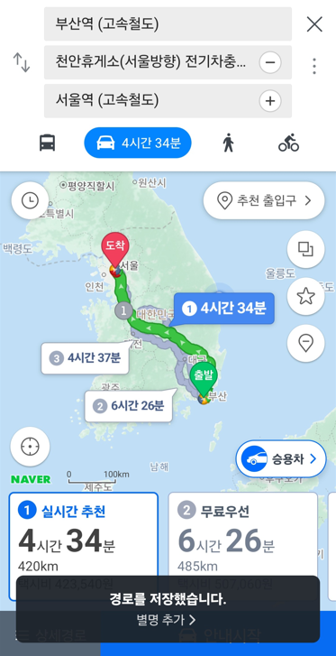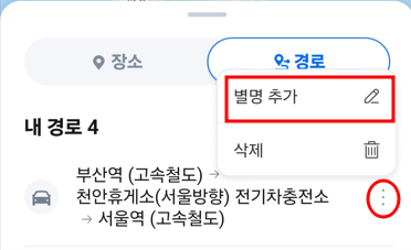 고로 자주 다니시는 장거리 자동차 경로에 경유지를 추가하여 저장해 놓고,