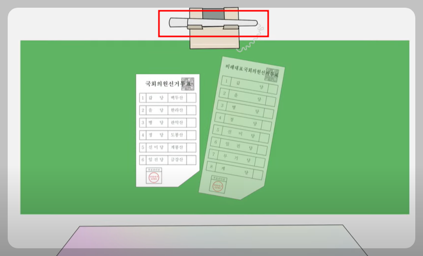 초록색: 비례대표 국회의원을 뽑는 투표용