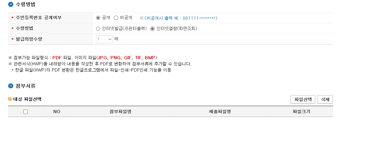 저는 '인터넷열람(화면조회)'를 선택했습니다.