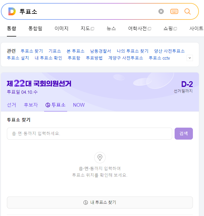 네이버와 유사하게 '투표소'로 검색해서