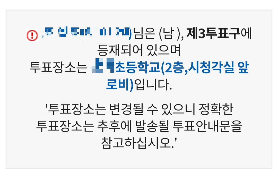 1.3. 아래와 같이 본인이 본선거(4월10일) 투표 장소가 나옵니다.