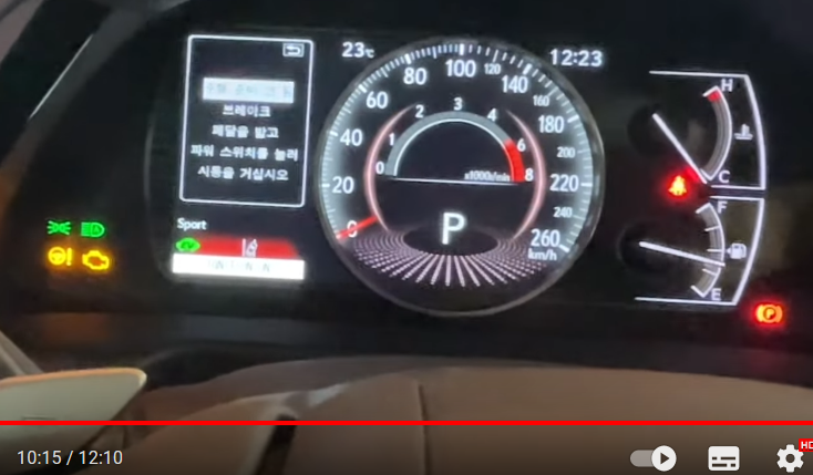 9:35 전자식 파킹 버튼은 시동 버튼 아래쪽에 있다.