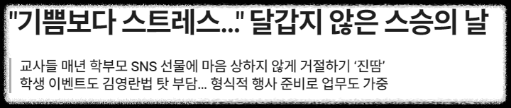 스승의 날에 선생님들은 선물 받으면 오히려 힘들어하십니다. (아래 기호 일보 기사)
