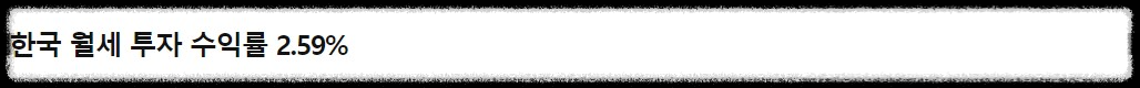 참고로 한국 아파트의 년 평균 월세 수익률은 2.59%입니다.