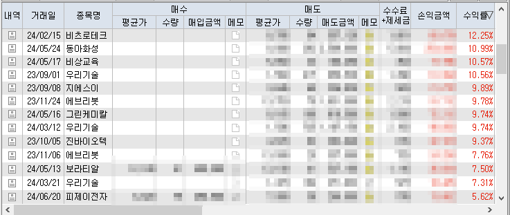 평균적으로 첫 매수 후 완전 매도 EXIT까지 몇 달이 걸리니 제 투자를 단타라고 보기 어렵습니다.