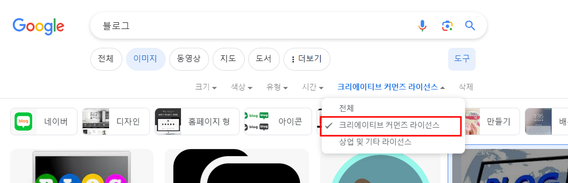4.2. 아래 그림 2와 같이 '크리에이티브 커먼즈 라이선스'에 해당하는 이미지만 남긴다.