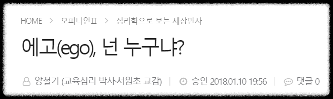 ps 1. 위 내용 중 파란색으로 적힌 내용 중 일부는 아래 충청 타임즈 기사 《에고(ego), 넌 누구냐?》에서 참조하였습니다.