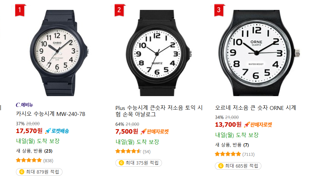 그러고 보니 맨 위 사진의 여학생도 위 사진과 비슷한 손목시계를 책상위에 두고 수능을 보고 있네요.
