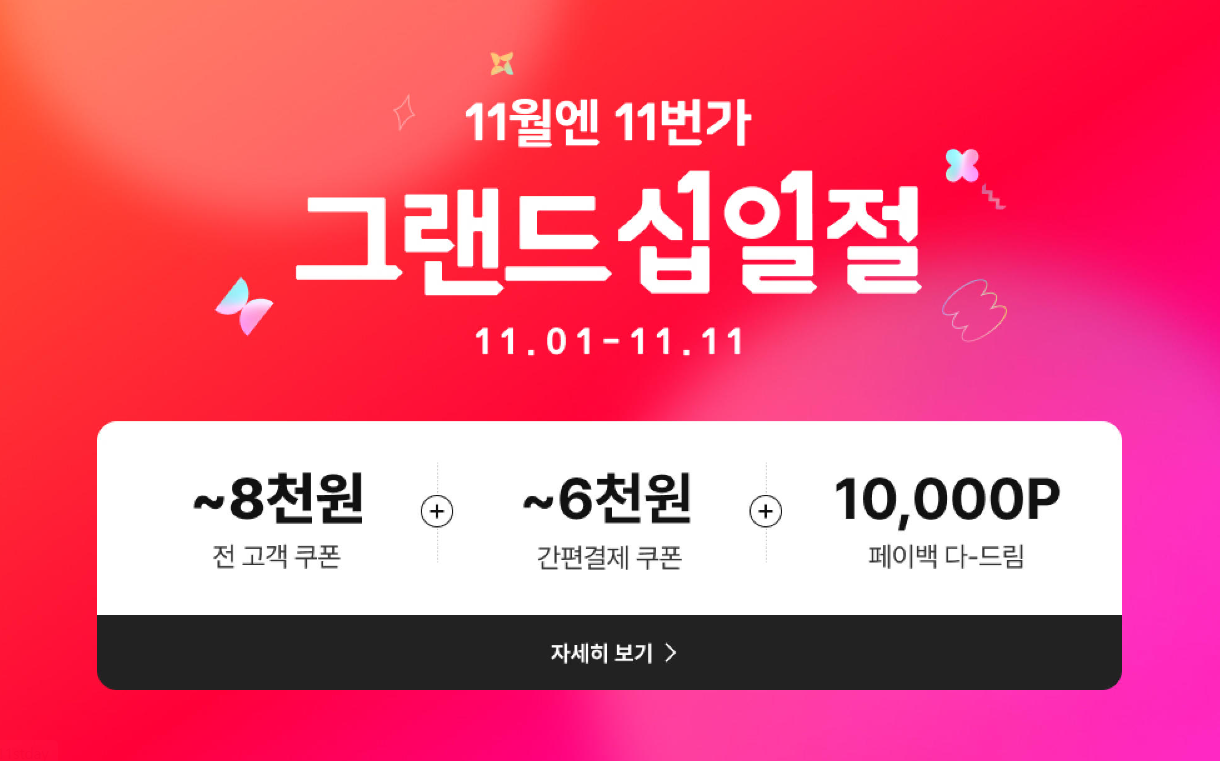 십일절 전날부터 다양한 할인 쿠폰을 미리 발급받을 수 있으며, 일부는 한정 수량이니 미리 챙겨두는 게 좋습니다.