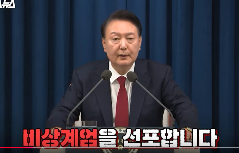 윤석열 대통령이 12월 3일 밤 10시 27분에 비상계엄을 선포했습니다.