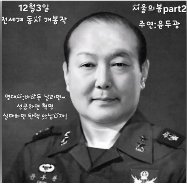 아래와 같이 서울의 봄 포스터에 윤 대통령을 합성한 밈도 나왔네요.