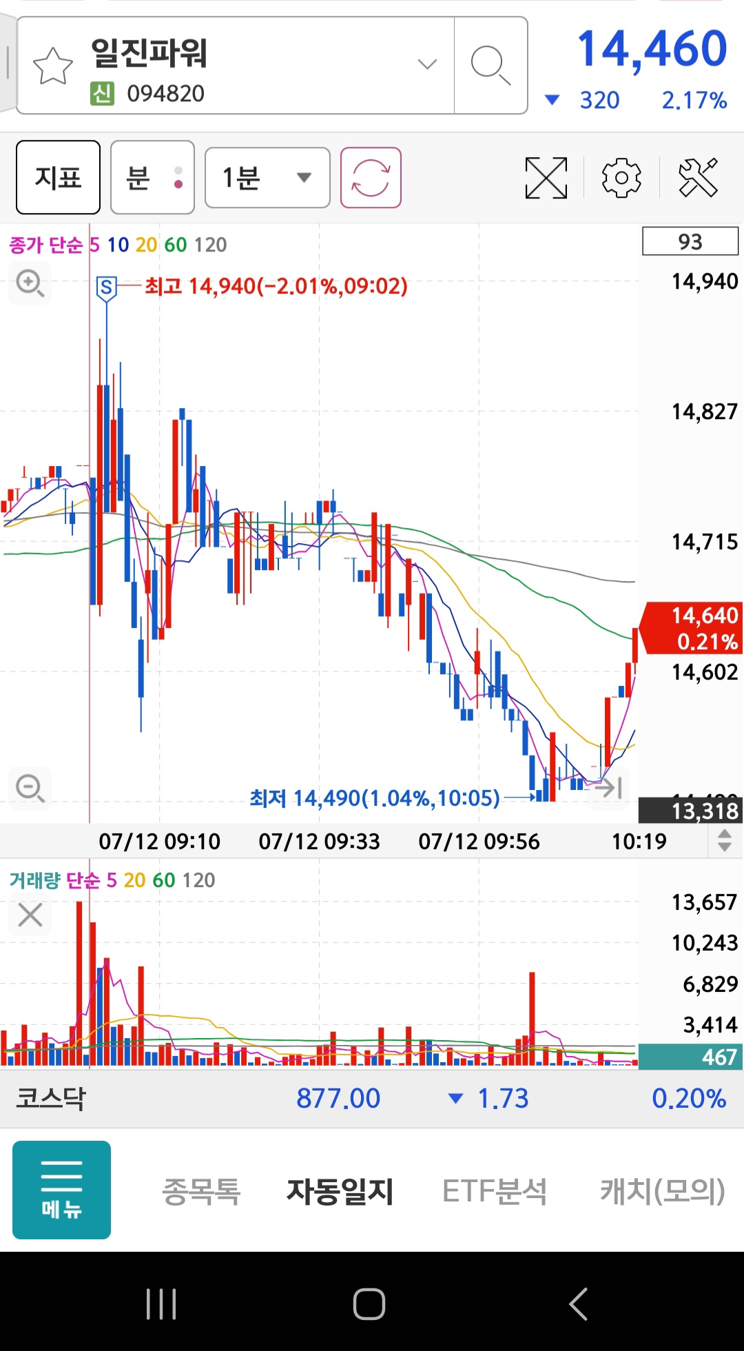 7.7에 5일선 기울기 바뀐거 보고 매수한게 나이스 플레이였음.