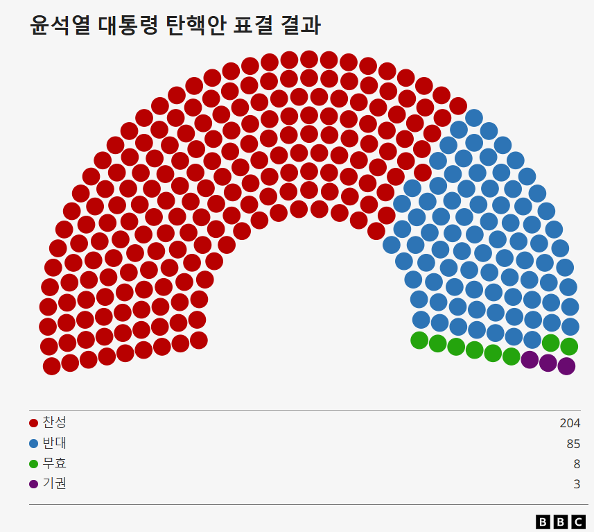 2024년 12월 14일 헌정 사상 3번째로 한국 대통령의 탄핵소추안이 가결되었습니다.