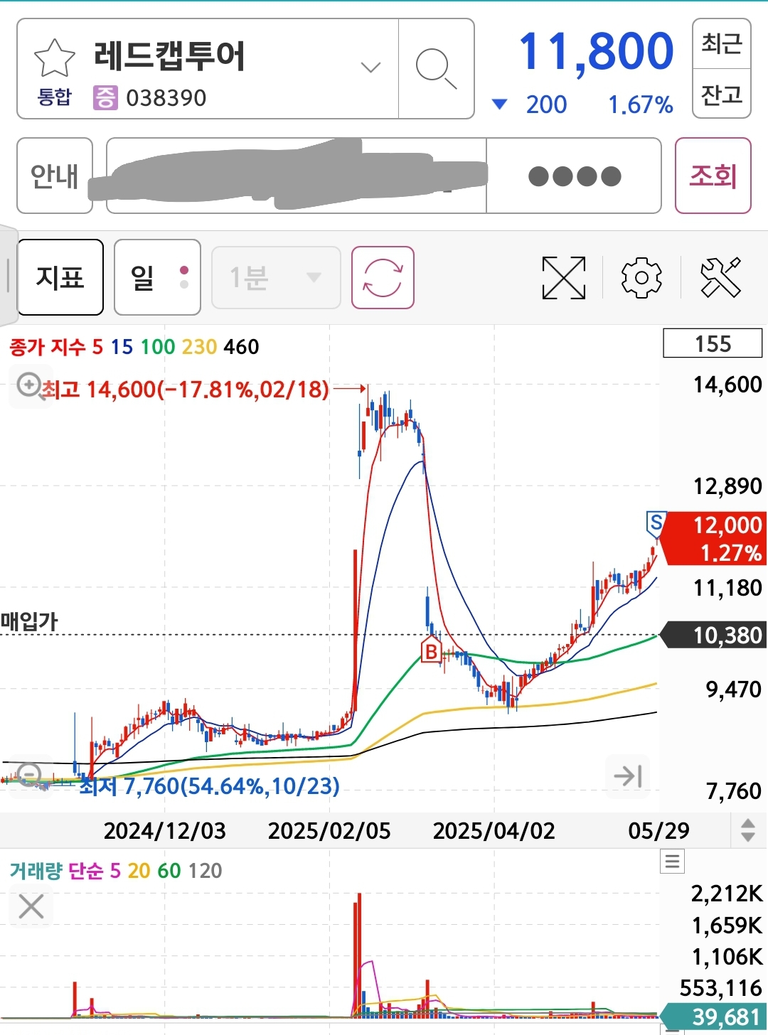 주가가 기준가에 도달하자마자, 알람뜨자마자 물타기 매수.