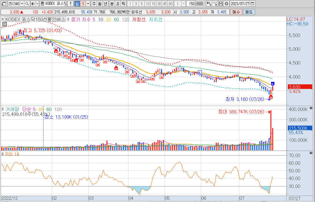 | [매매일지]KODEX 코스닥 150 선물 인버스 (7.26~7.28 전량매도 완료) (22) | 2023.08.01 |